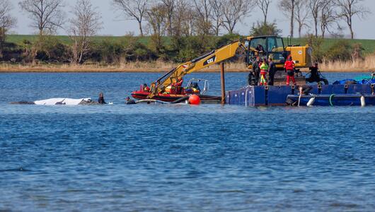 Mit den Sandsäcken soll verhindert werden, dass er nicht weiter in die Flachwasserzone rutscht. Die News vom 21. April zum Nachlesen.