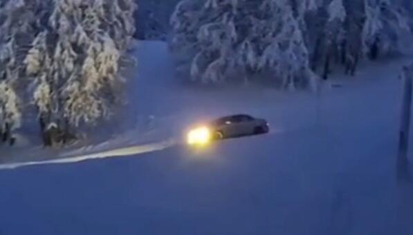 Auto rast über Skipiste in Frankreich
