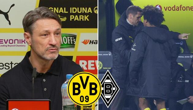 Wutausbruch mit Folgen? Karim Adeyemi reagiert nach seiner Auswechslung beim 2:0 gegen Gladbach sichtlich wütend. Trainer Niko Kovac findet danach klare Worte zur Leistung des BVB-Stürmers.
