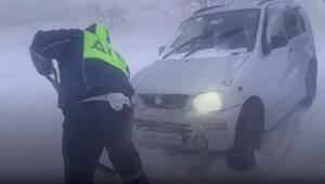 Schneesturm bringt russische Stadt zum Stillstand