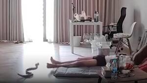 Schlange beißt schlafenden Mann