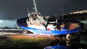 Schiff der russischen Küstenwache kippt im Hafen um – Crew hat Glück
