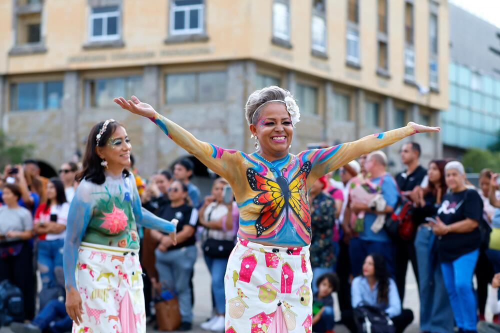 Eine Brustkrebsüberlebende nimmt an einer Modenschau im Cabañas-Museum in Guadalajara teil. Zahlreiche Überlebende präsentierten sich mit Körperbemalung, um Betroffenen Hoffnung und Würde zu vermitteln.