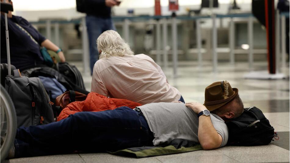 Vor der Abfluganzeige standen in der Nacht mehrere Gruppen gestrandeter Reisenden mit ihrem Gepäck und berieten sich, wie ein dpa-Reporter berichtete. Andere legten sich auf die Sitzbänke. Hunderte Menschen mussten im Airport übernachten. "Es wurden Feldbetten aufgestellt, sowie Decken, Getränke und Snacks ausgereicht", heißt es auf der Internetseite.