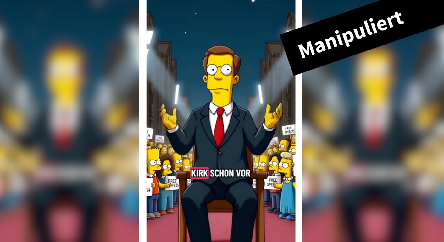 - Manipuliert. Bilder und Videos, die entsprechende Szenen zeigen, sind höchstwahrscheinlich KI-generiert. Es gibt keine "Simpsons"-Folge, in der die Tötung von Charlie Kirk thematisiert wird.