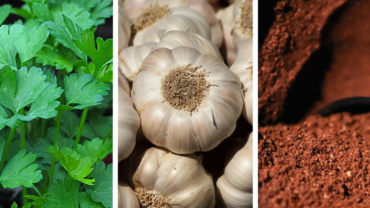 - Kaue Petersilie, Salbei oder Minze – die ätherischen Öle in den Kräutern vertreiben Mundgeruch. Dass die Kräuter gegen Knoblauchgeruch helfen, bewies auch eine Studie.
