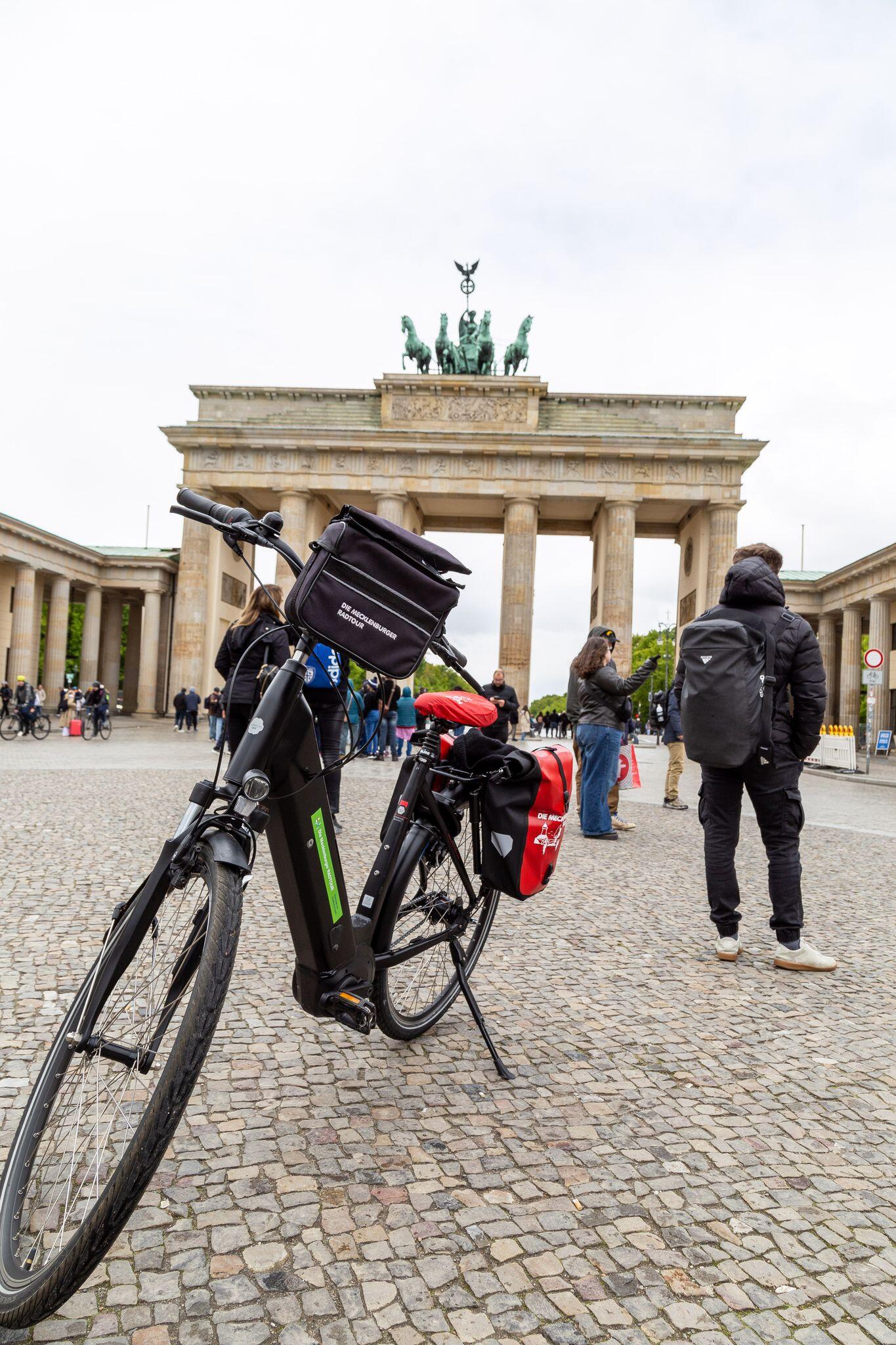 Startpunkt des 680 Kilometer langen Berlin-Kopenhagen-Radweges ist das Brandenburger Tor, wo vor historischer Kulisse ein erstes Gruppenfoto geschossen wird. Dann aufsitzen und ein Stück dem ehemaligen Mauerstreifen folgen. Beim einstigen Wachturm Kieler Straße in Spandau erinnert eine Inschrift an den ersten Mauertoten Günter Litfin.
