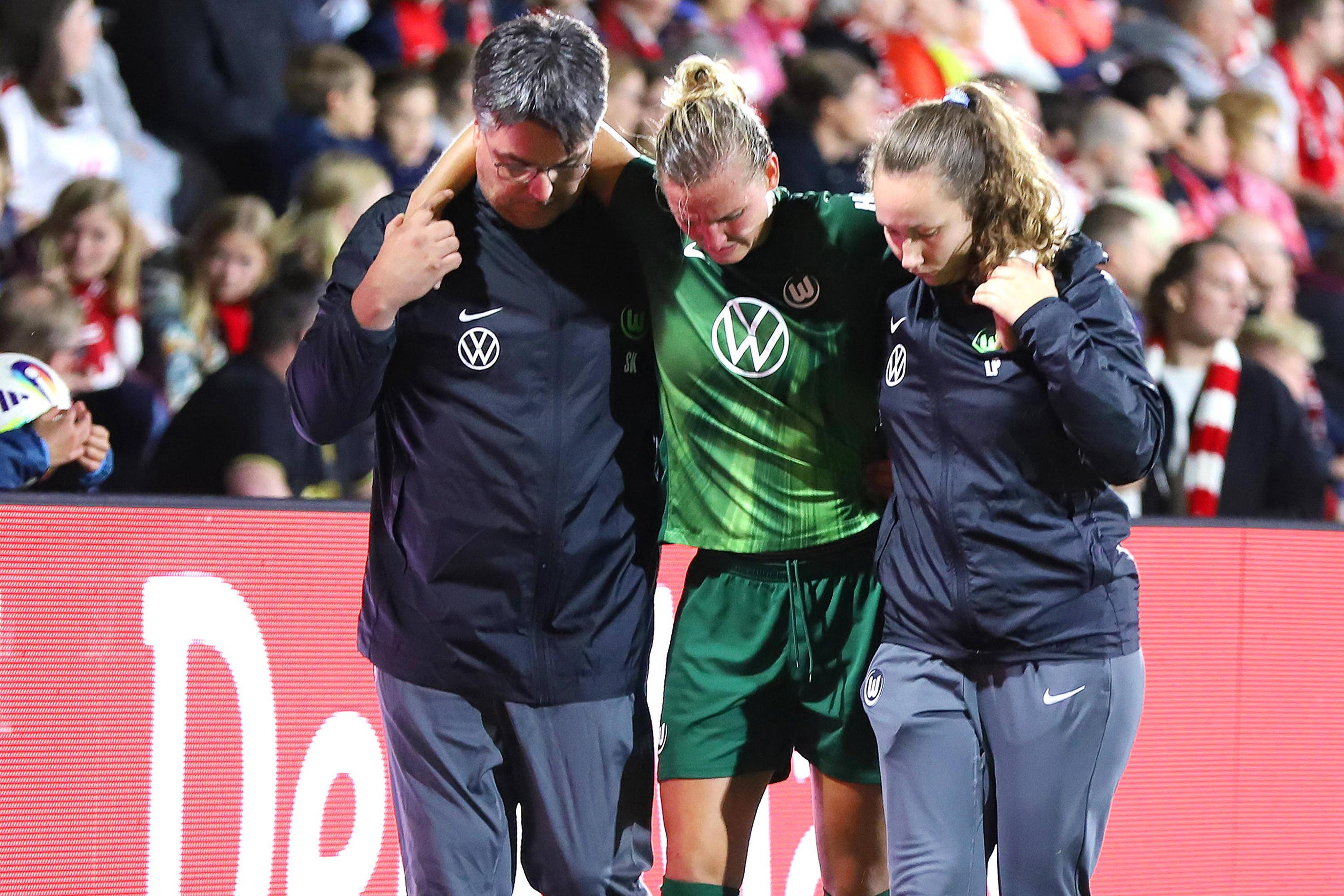 Der VfL Wolfsburg bangt um Alexandra Popp. Beim knappen Sieg über den 1. FC Köln muss die Stürmerin verletzt und sichtlich unter Schmerzen ausgewechselt werden.