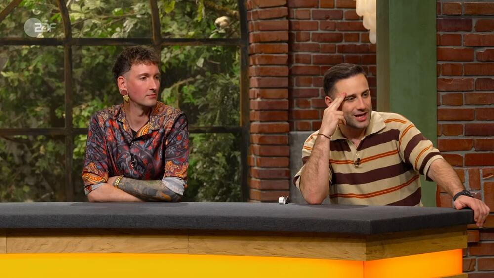 Meyer (r.) will vom Verkäufer wissen: "Wie viele Klemmbrett-Werbeklemmen-Sammler gibt es in Deutschland?" Gerd verrät: "Nicht so viele." Er meint: "Im Netz sind die selten. Und dann auch relativ hochpreisig." Fabian Kahl überzeugt die Info: "Sie machen es uns richtig schmackhaft."