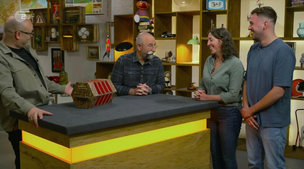"Ich wusste, ich brauche Hilfe", lacht Lichter, als die Geschwister am Tisch stehen, und ist heilfroh, dass Deutschmanek den "Musikantenstadl" beendet. Für die schiefen Töne des Experten kann aber die "Quetschkommode" nichts. Immerhin stammt das Musikinstrument vom Urgroßvater. Deutschmanek datiert in den 1920er/30er Jahren.