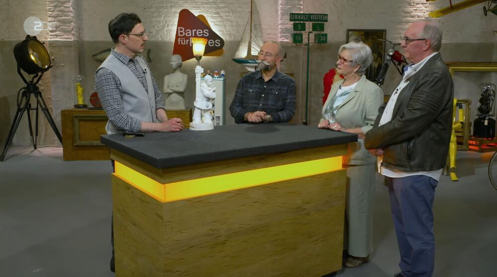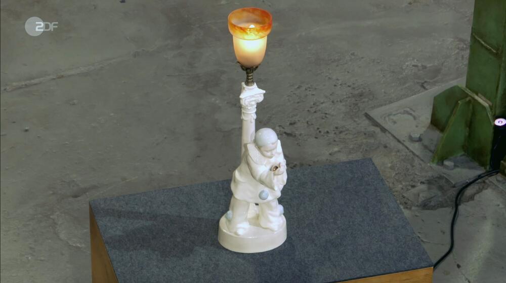 Adele und Dieter aus Euskirchen wollen eine besondere Lampe verkaufen, die die Verkäuferin vor Jahren als Geburtstagsgeschenk bekommen hat. Dabei handelt es sich um ein Leuchtmittel mit einem Pierrot aus Keramik, der von dem französischen Bildhauer Adolphe-Jean Lavergne stammt.