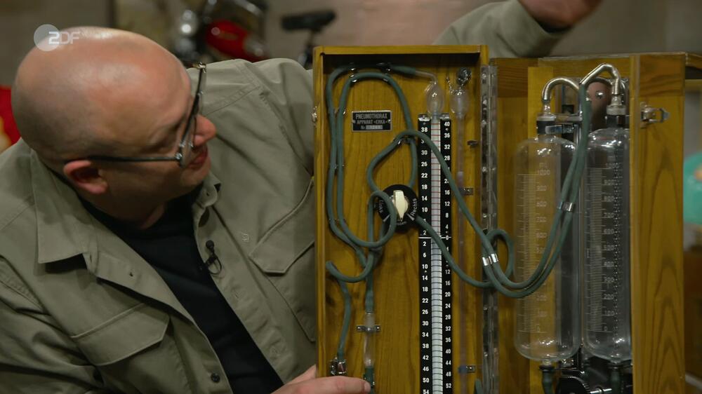 Verkäufer Georg aus Morbach will ein altes, medizinisches Gerät veräußern, das laut Plakette "Pneumothorax" heißt. Der Experte Sven Deutschmanek datiert das Lungen-Gerät in den 1930er Jahren.