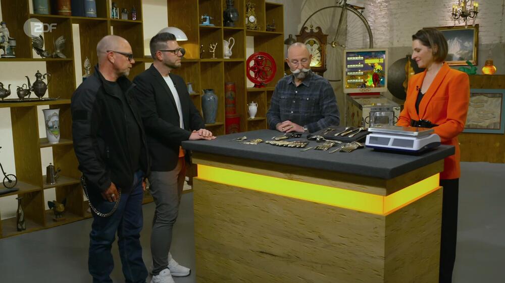 Für das Set für zwölf Personen wünschen sich die Verkäufer 3.000 Euro. Doch auch hier taxiert die Expertin niedriger - auf 1.500 bis 1.800 Euro. Die Händlerkarte wird trotzdem akzeptiert. Händlerin Elke Velten zahlt 1.650 Euro.