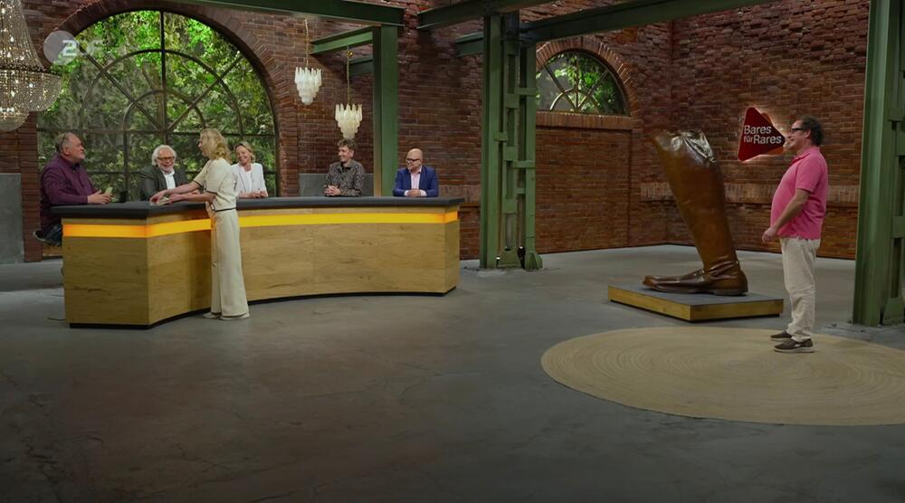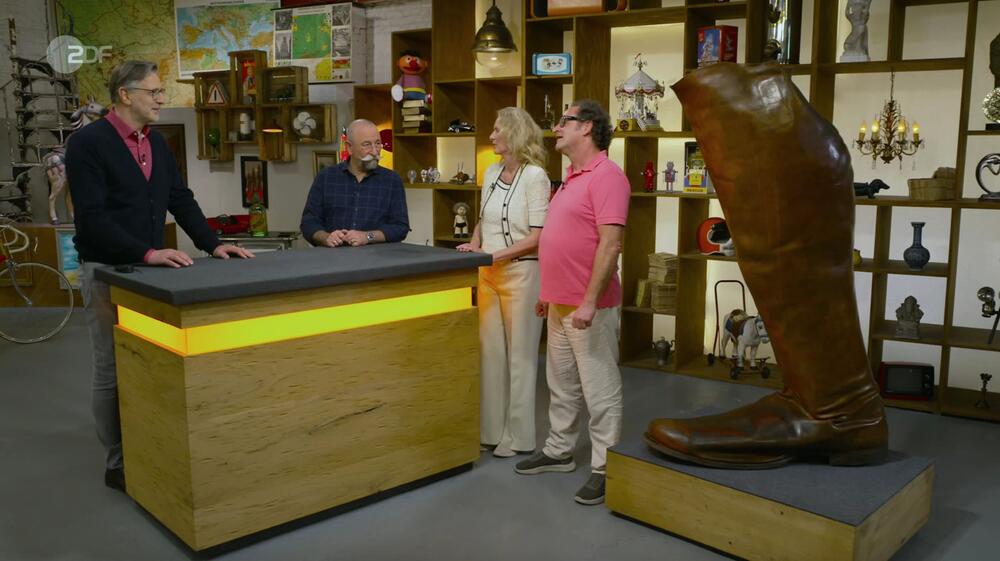Staunen, lachen, Sprücheklopfen - ein überdimensionaler Stiefel bringt bei "Bares für Rares" alle zum Schmunzeln. Nur eine Frage bleibt: Wer traut sich, das XXL-Teil tatsächlich zu kaufen?