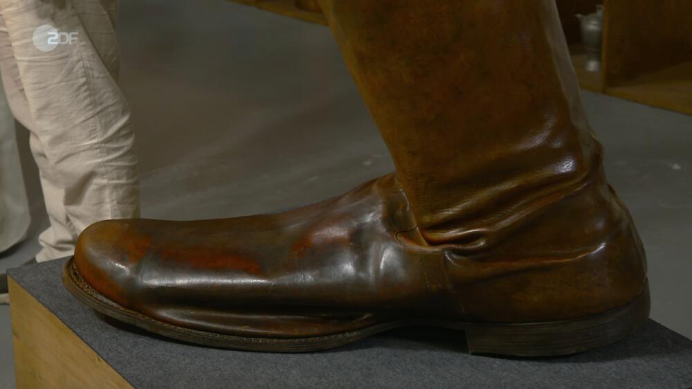 Dennoch weiß Kümmel, "das ist mit Sicherheit ein Meisterstück". Der komplette Schuh samt Sohle ist aus Leder gebaut, handgenäht und genagelt. "Hier wurde ganz genau gearbeitet", lobt er. "Irre", entfährt es auch Lichter, als er den Aufwand, "einen Riesenstiefel 1:1 nachzubauen", erkennt. Doch leider ist das Leder teilweise schon trocken und brüchig.