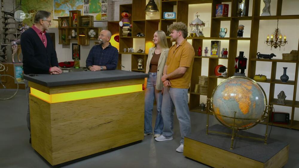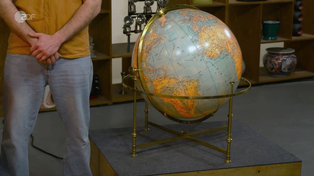 Gina und Niklas aus Moers haben einen Globus dabei, der bei einer Entrümpelungsaktion entsorgt werden sollte. Detlev Kümmel datiert den beleuchtbaren Globus mit politischer Karte in den 1970er Jahren.