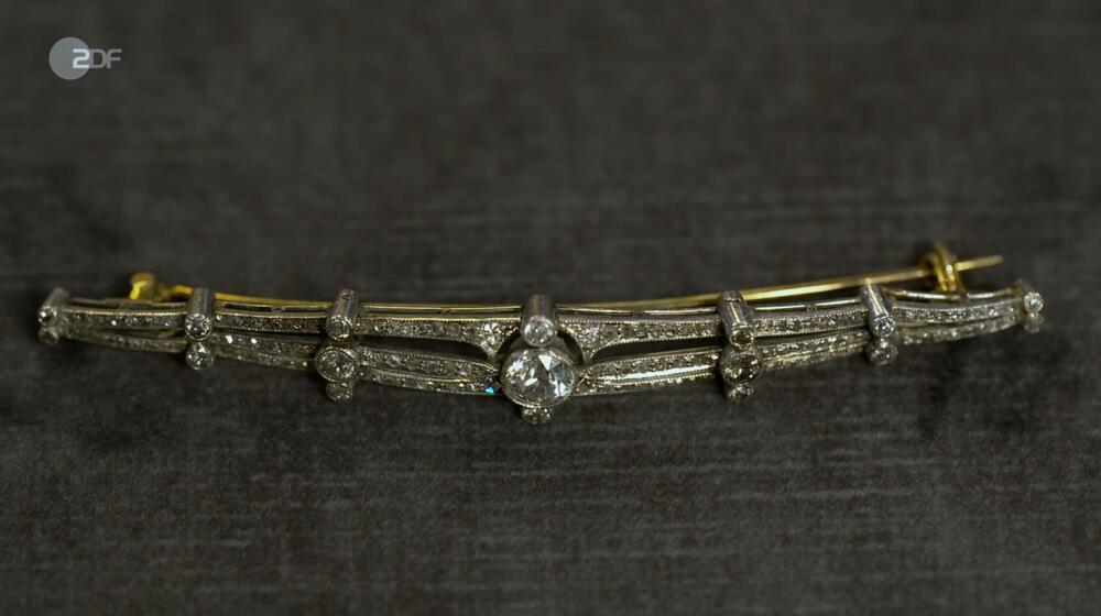 Antje aus Seggebruch will eine Stabbrosche ihrer Großmutter verkaufen. Patrick Lessmann testet den nicht punzierten Schmuck aus Platin und 585er Gelbgold. Dazu sind Diamanten im Altschliff und Diamantrosen (insgesamt 1,2 Karat) auf der Brosche gesetzt.