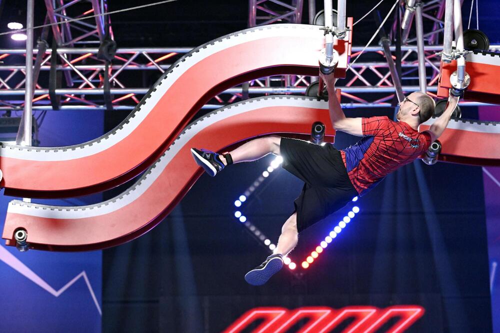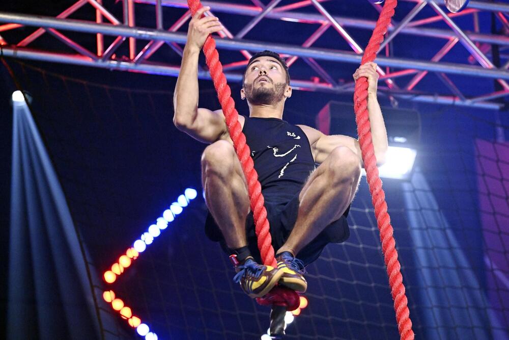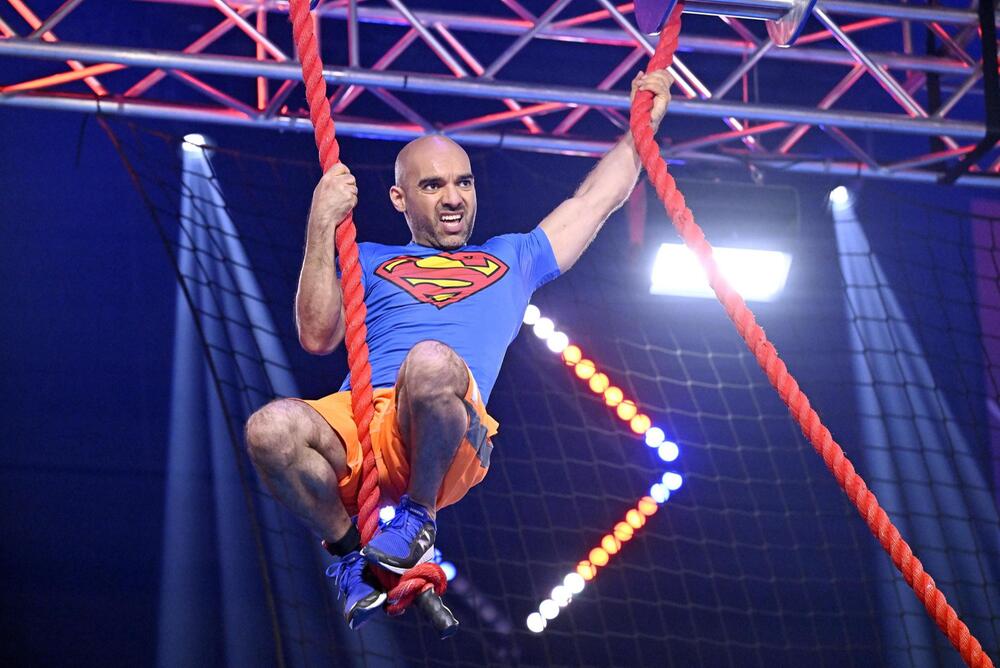 Omid Bayat lässt seinem Superman-T-Shirt Taten folgen. Der 39-Jährige ist ein "Ninja der zweiten Stunde", wie Buschi sagt, war zwischen der 2. und 7. Staffel fünfmal dabei und kehrt jetzt nach dreijähriger Pause zurück. Und wie: Er schafft es bis zur 3. Landezone des Luft-Surfers. Damit steht er im Halbfinale. Comeback geglückt.