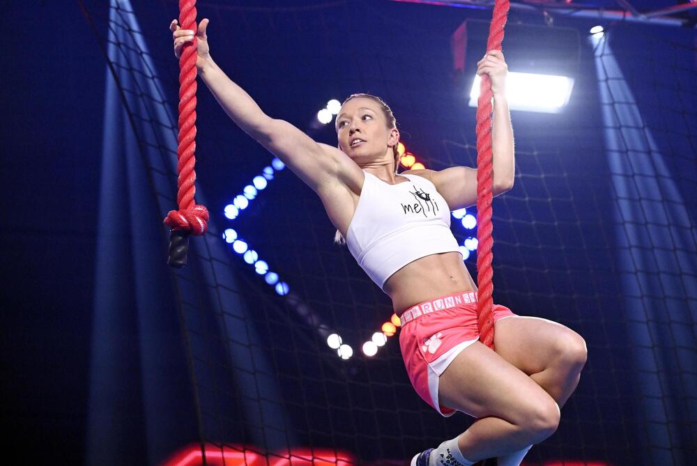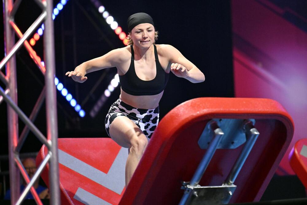 Soraja Bürki ist 16 und erst seit kurzem Ninja-Sportlerin. Die Schweizerin wurde von NWG-Routinier Chris Harmat entdeckt. Und sie macht ihre Sache gut. Am Radwechsel aber geht ihr die Kraft aus, sie kann den letzten Wechsel nicht umlegen. Der erste Auftritt endet im Wasser, aber, so Buschi: "Die wird noch von sich reden machen. Wahnsinn!"