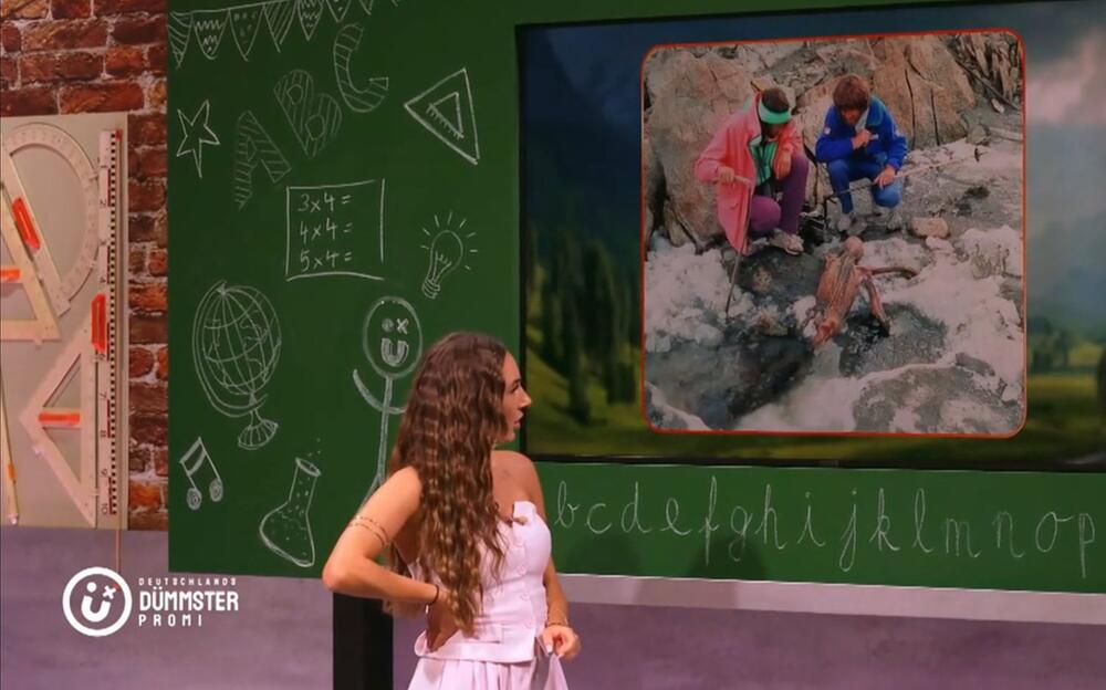 Doch auch Alessia Herren offenbart erneut erhebliche Wissenslücken. Gletschermumie Ötzi erkennt sie nicht, wundert sich stattdessen: "Krass, lebt der noch?" Mario Basler steht zunächst auch auf dem Schlauch, kommt dann jedoch auf Umwegen zur Lösung: "Mir ist dann DJ Ötzi eingefallen", freut er sich.