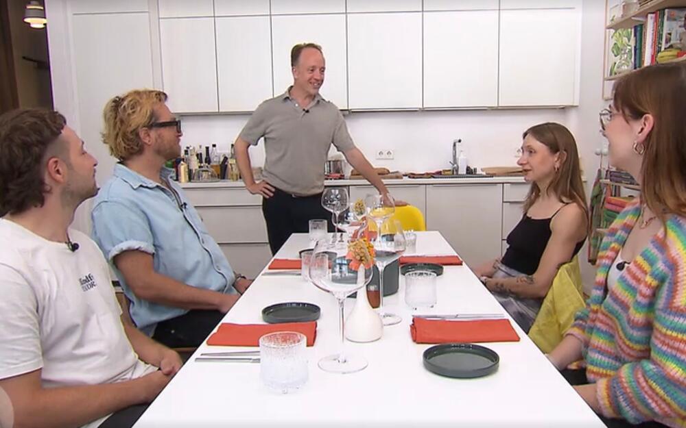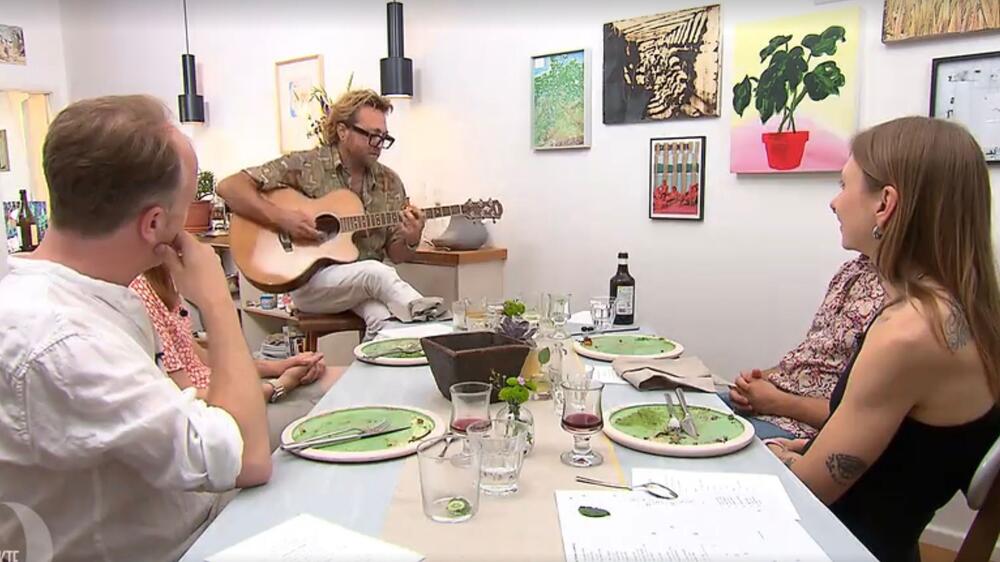 "Die geräucherte Karotte ist mega", kommentiert Dustin die "Bruschetta Three Ways", die Stephen als erstes auftischt. "Er ist cool, ein richtiger Stimmungsmacher", loben Lina und Marie ihren Gastgeber, der sogar eine kleine Akustik-Performance gibt. Eine "Landkarte" führt die Runde außerdem durch die Wohnung und erklärt die vielen Kunstobjekte.