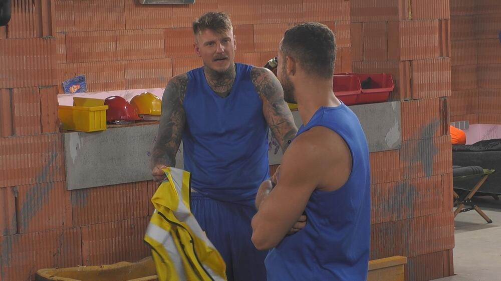 Auf andere Weise emotional ist am zehnten Tag im Rohbau Paco Herb (l.). Der Influencer ist sauer, dass Laura Lettgen alias Laura Blond ihn in der "Ladies Night" nominiert hat. Dabei hätten die Influencerin und Sarah-Jane Wollny ihm doch Unterstützung angeboten.