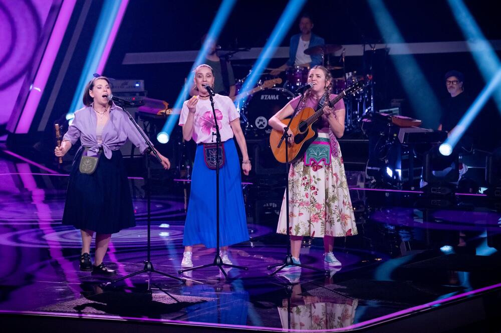 Traditionsgetreu gehen Katharina und Markus vom Flintsbacher Zwoagsang in Dirndl und Lederhose auf die The Voice-Bühne. Mit leider manchmal nicht ganz perfekten Harmonien performen sie Rainhard Fendrichs "Weus'd a Herz hast wia a Bergwerk" und krönen ihren Auftritt mit einem Kuss. Kein Buzzer.