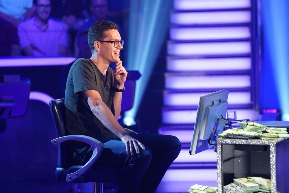 Nachdem auch sein Telefonjoker die 32.000-Euro-Frage nicht sicher beantworten kann, steigt Nixdorf bei 16.000 Euro aus und freut sich über das Finalticket.