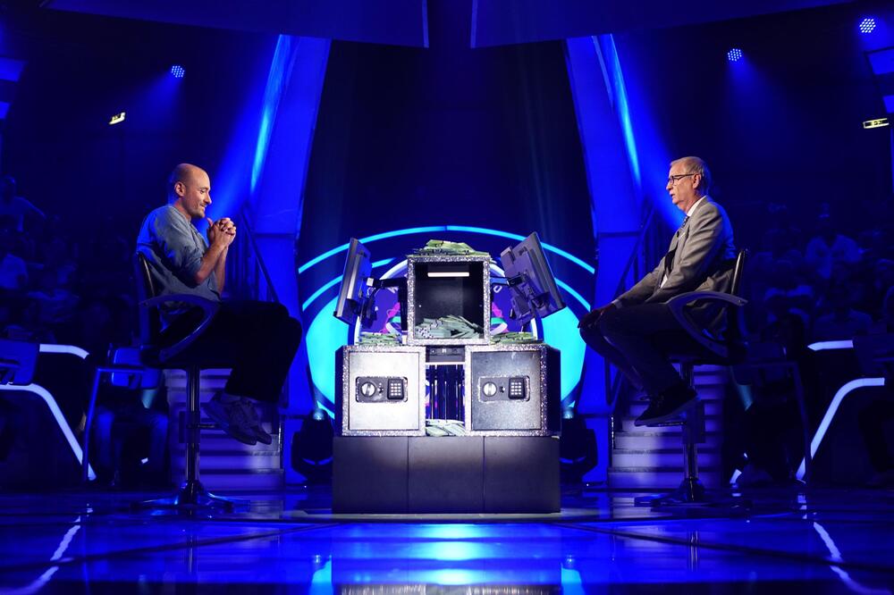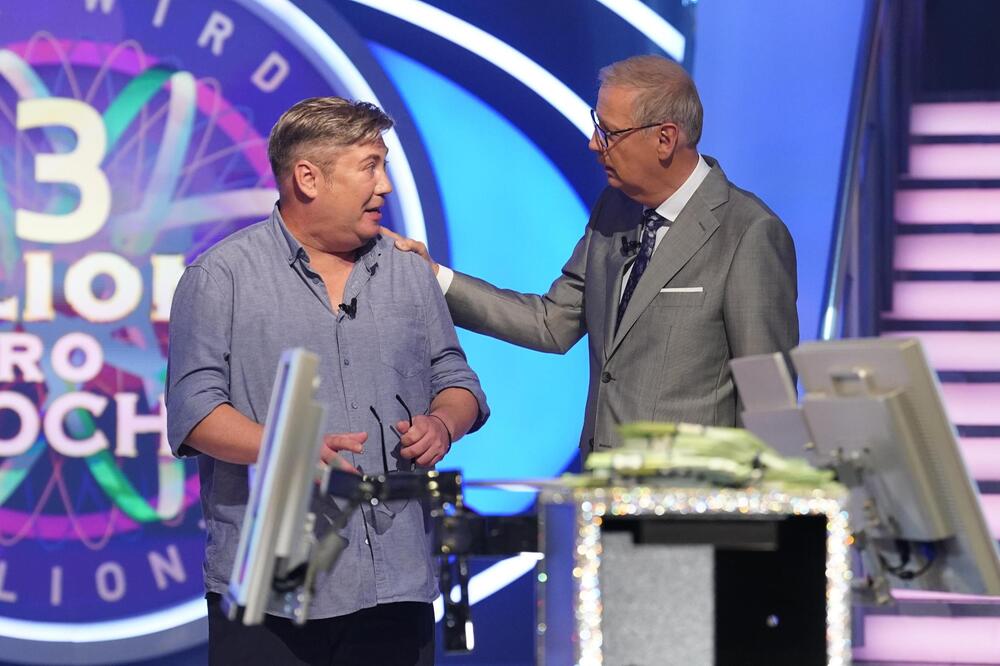Einen dramatischen Absturz erlebt Marc Offenbacher (l.) aus München, der hofft, sich für das Finale der "3-Millionen-Euro-Woche" von "Wer wird Millionär?" zu qualifizieren. Anfangs läuft alles bestens, sogar Günther Jauch ist überrascht. Doch dann findet der Durchmarsch ein jähes Ende.