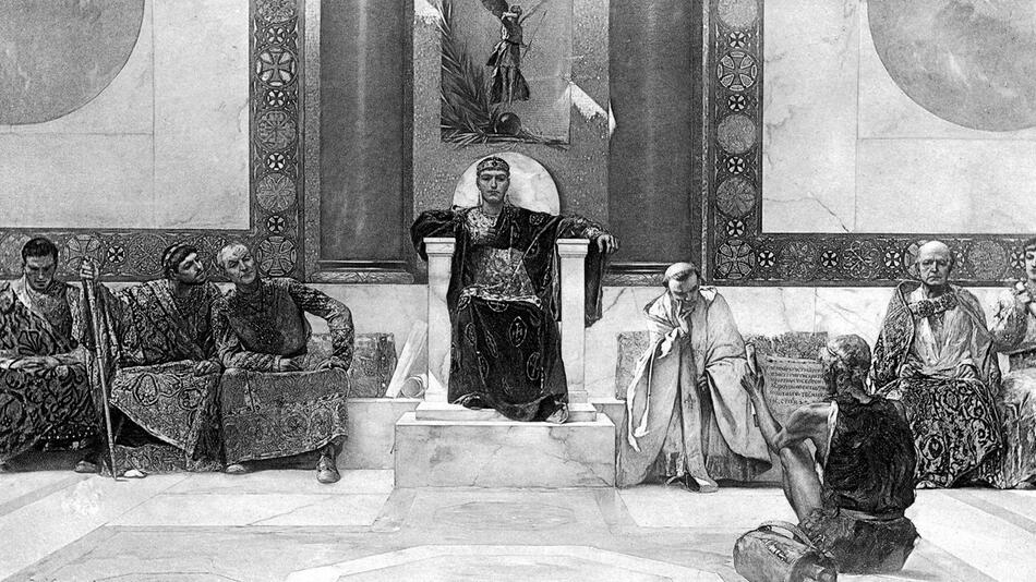 Die Zeit war geprägt von territorialen Auseinandersetzungen und Völkern, die um die Herrschaft in den ehemaligen Provinzen des Reichs rangen. Dann kam es im Sommer 536 zu einem Ereignis, das weit über die Grenzen des Imperiums hinauswirkte: Der Chronist Prokopios von Caesarea schreibt, dass "die Sonne ohne Glanz" gewesen sei. Ein mysteriöser Staubschleier legte sich über Europa, den Nahen Osten und Asien.